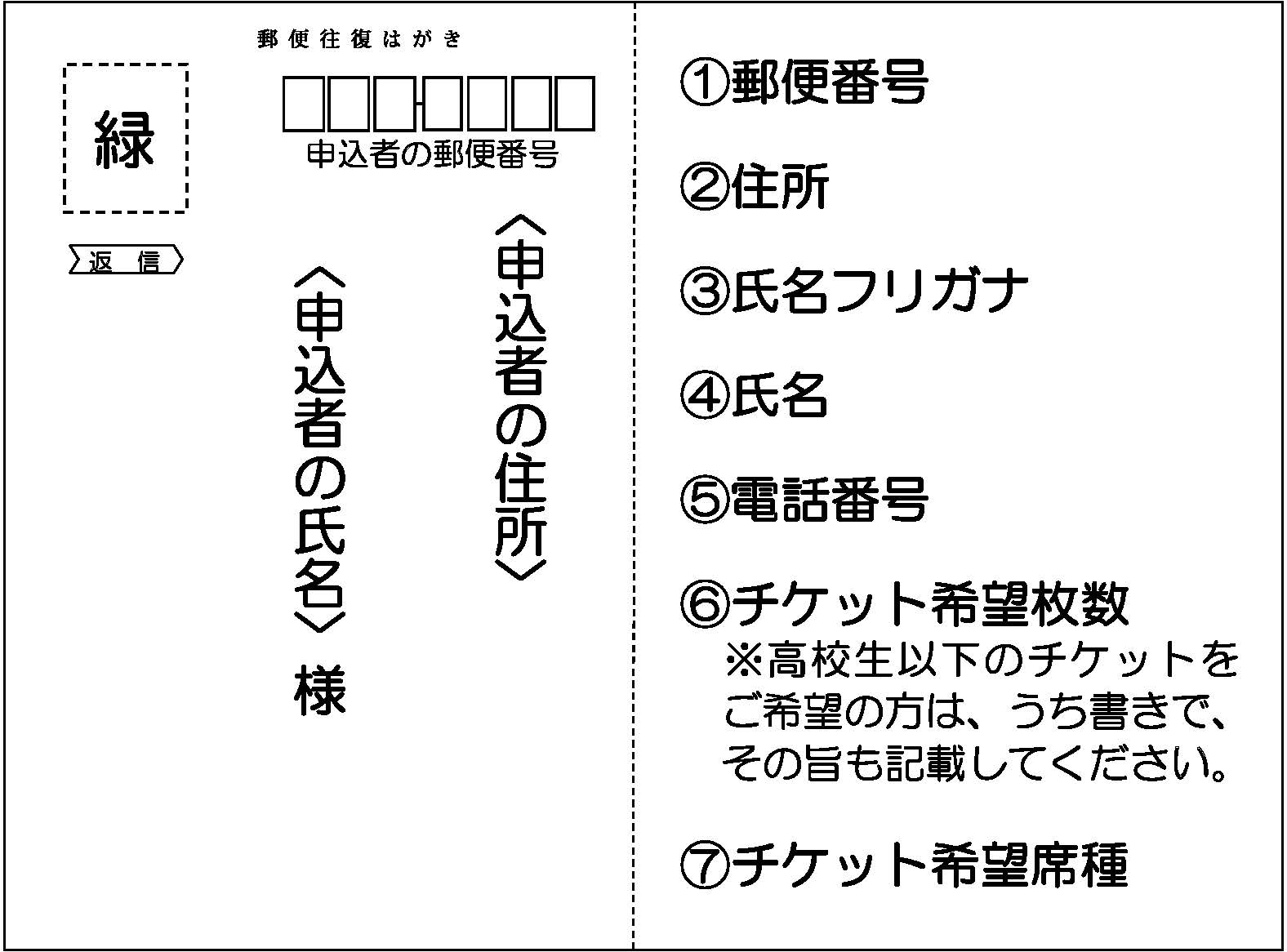 ※高校生以下のチケットをご希望の方は、うち書きでその旨を記載してください。